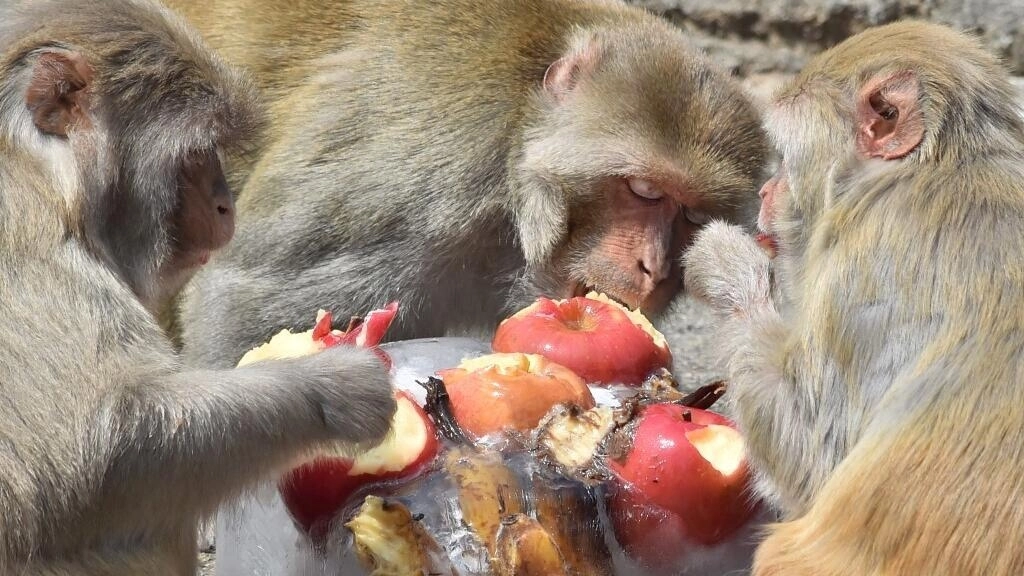 日本では、ニホンザルが襲い、住民が身を守る